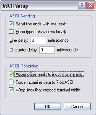 In ASCII Setup set “Send line ends with line feeds” and “Append line feeds to incoming line ends”.