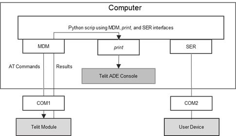 • MDM interface must be connected to an AT parser, accordingly Python script must be connected to a module through an available COM port chosen by the user.