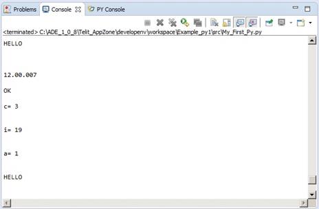See the outputs of the script on the AppZone Python Console. The script uses the print interface