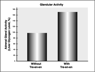 Glandular activity (as measured by liver glycogen levels) was almost twice as high in the Tre-En-En-fed rats compared to the control animals. This result indicates that the Tre-En-En-fed animals had higher energy levels and were better prepared to handle stress.