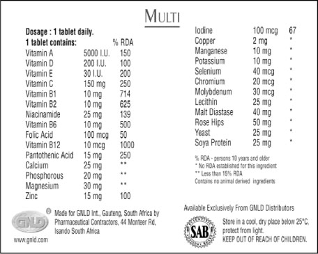 from nutritional supplementation. A broad spectrum, comprehensive formula, Multi,
