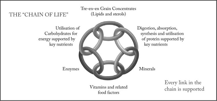 GNLD’s Formula IV and Formula IV Plus are unique multifactor supplements to strengthen nutritional “links” in the “Chain of Life.” Frequently imitated, its formula has never been successfully copied. The main reason? Formula IV and Formula IV Plus offer something extremely special - Tre-en-en Grain Concentrates. Providing the complete lipid and sterol profile of wheat, rice and soya, cold-pressed Tre-en-en provides phytonutrients that are often stripped from dietary staples during food processing, but which our cells need to be healthy and energetic best. It’s been scientifically proven to support efficient nutrient utilization and to support overall growth and development. Tre-en-en’s unique blend of lipid and sterol grain concentrates, function in synergy with the vitamins, minerals and other critical nutrients in Formula IV and Formula IV Plus to support the “links” in the “Chain of Life” with a unique multifactor supplement that no mere vitamin/mineral product on the market can match!
