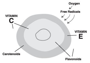 Long-term exposure to sunlight is a risk factor for cataracts, the world’s leading cause of blindness. Free radicals in sunlight may cause proteins in the eye’s lens to break down, clump together, and cloud the lens. Vitamin C is 20 times more concentrated in lens tissue than in blood.14 According to a Harvard study of more than 120,000 nurses, Vitamin C supplements and an antioxidant-rich diet may help lower the risk of cataracts: Women who had taken Vitamin C supplements for at least 10 years had a 45% lower risk of cataracts.15 People who consume less than 125 mg per day of Vitamin C have four times the risk of developing cataracts compared to those consuming more than 500 mg per day.