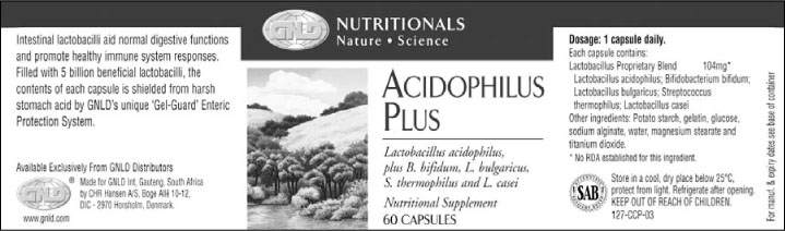 healthful roles of these foods. GNLD’s supplement of beneficial bacteria, Acidophilus