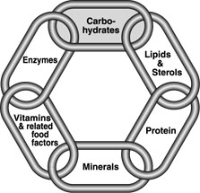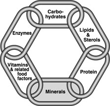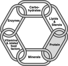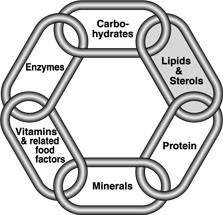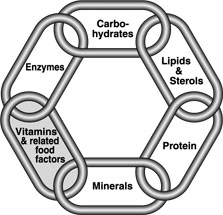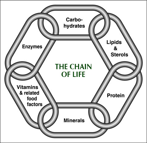 The strength of one “link” in the nutritional “Chain of Life” often depends upon the strength of another “link.” For example, before vitamins can be utilized efficiently in the body, minerals must be present. In fact, for optimum functioning throughout the body, all six nutrient groups must be presented in sufficient quantities and in proper balance. Only then can a complete, strong nutritional “Chain of Life” exist.
