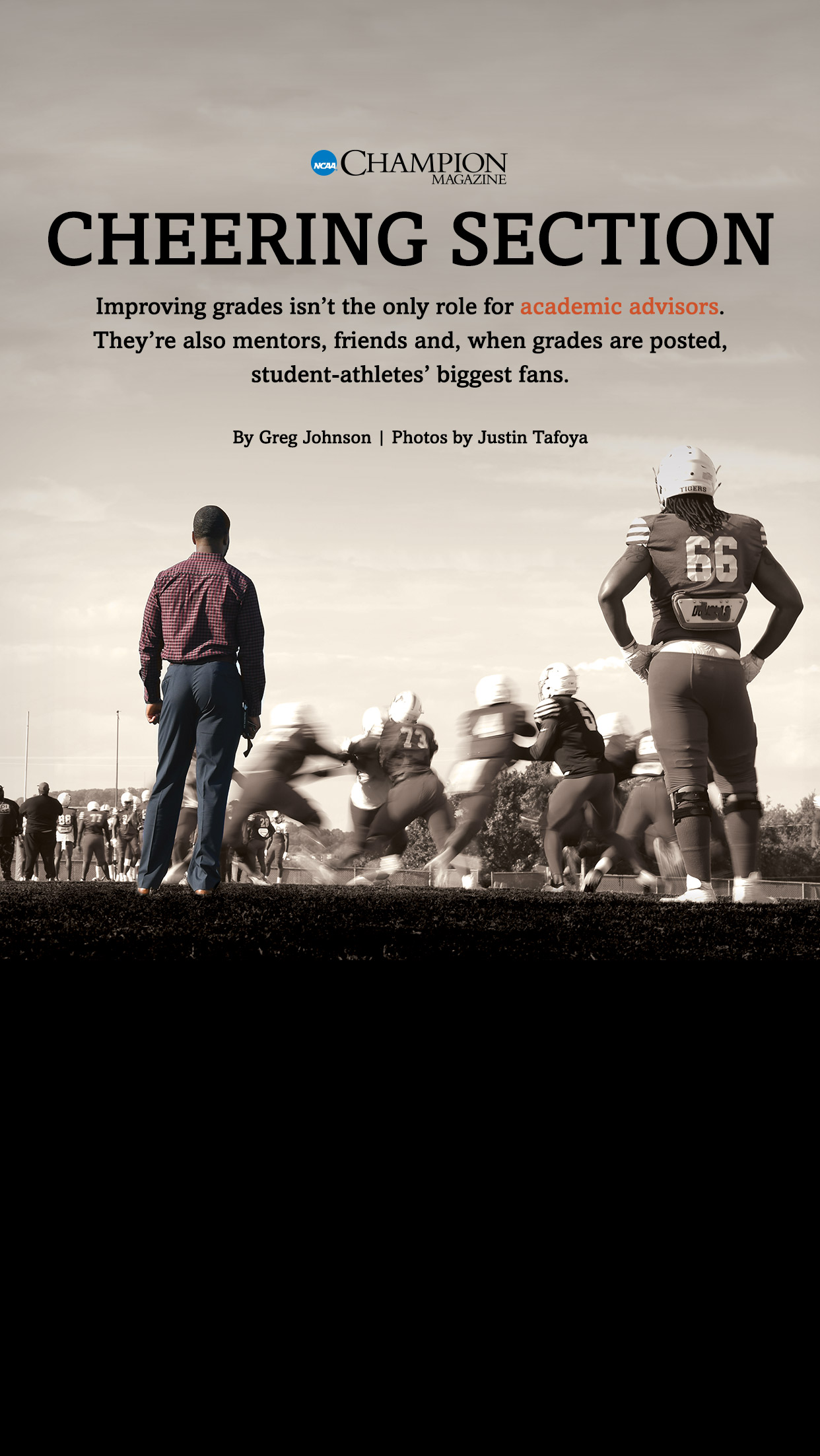 The advisors see the reward — a white sash embroidered with the school’s tiger logo. Words on one side of the sash say “student-athlete.” And when their students wear the sash for commencement, the academic advisors feel pride. They look to these kids who are like their sons, their daughters or their friends, and remember everything that went into making this moment.