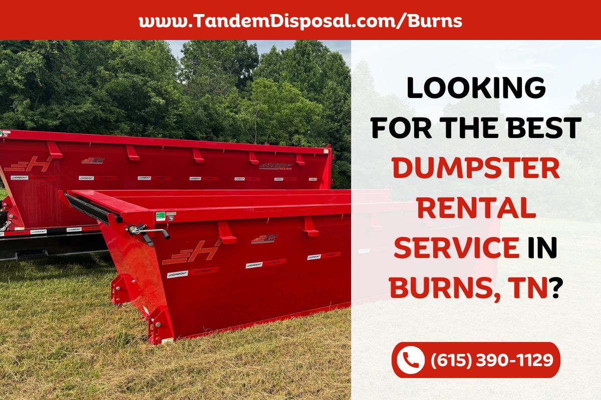 When you effortlessly book your dumpster rental in Burns, TN, through our team, you can expect a professional experience with no surprises. We respond promptly, schedule deliveries around your timeline, and make sure you know exactly what to expect. At Tandem Disposal, good service starts with making things easy and accessible. You don’t have to jump through hoops or wait around — we’re ready to get your rental lined up and delivered on your terms.