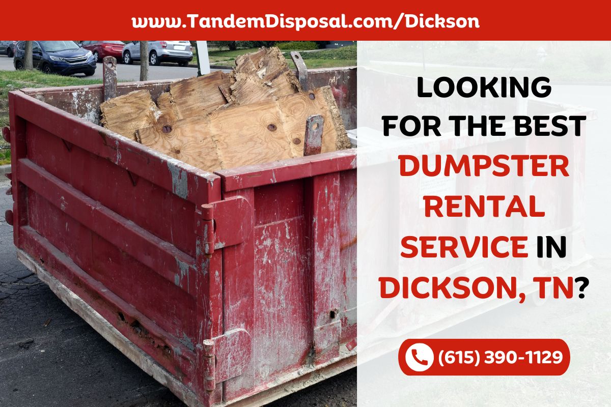 When you're ready to book your dumpster rental in Dickson effortlessly, we’re just a phone call or a few clicks away. We don’t make you jump through hoops to get your project moving. Instead, we offer straightforward scheduling and reliable drop-offs that keep your job site or property clean and efficient. Tandem Disposal is here to make sure booking your dumpster is as easy as it should be in Dickson, TN.
