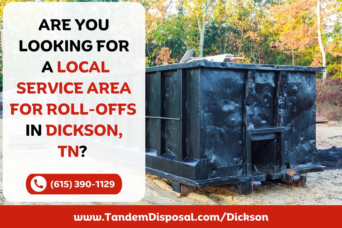 Understanding the local service area for roll-offs in Dickson County helps us provide faster turnaround and more personalized support. Our team knows the area well, and we’re used to navigating the unique needs of different parts of the county. Tandem Disposal is focused on making your waste removal process smooth from drop-off to pick-up, always with a local touch that larger companies can’t match.