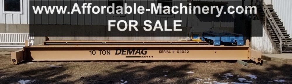 10 Ton Capacity Demag Overhead Bridge Crane For Sale Posted on by Dev 10 Ton Capacity Demag Overhead Bridge Crane Span: 25′ Share this:Click to share on Twitter (Opens in new window)Click to share on Facebook (Opens in new window)Click to share on Reddit (Opens in new window) Related
