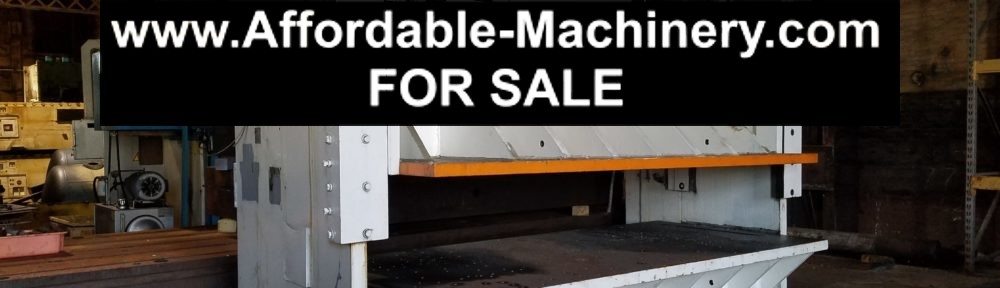 100 Ton Capacity D & K Straight Side Press For Sale Posted on by Dev 100 Ton Capacity D & K Straight Side Press Serial: P-8082 Model: 510-DSS Year: 1955 Capacity: 100 Tons Bed Area: 120″ x 54″ Stroke: 10″ Slide Adjustment: 8″ Shut Height: 18″ Equipped With: Air Clutch & Brake Air Counterbalances No Control Share this:Click to share on Twitter (Opens in new window)Click to share on Facebook (Opens in new window)Click to share on Reddit (Opens in new window) Related