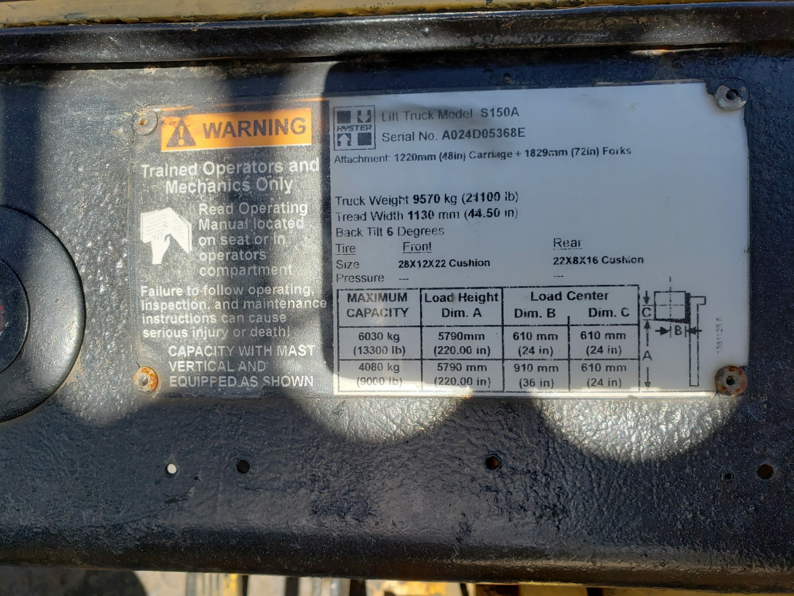 15,000 lb Capacity Hyster S150a Forklift – 7.5 Ton For Sale