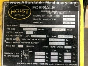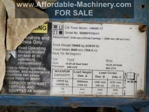 - Tagged 30,000 lbs but Factory Ordered with Special Counterweight, Heavy Duty Steer Axle, and Wheels