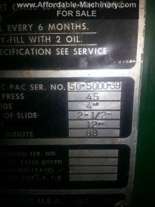 175 Ton Capacity Clearing Straight Side Press