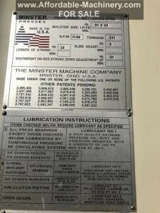 100 Ton Press For Sale – Minster P2-100 Straight Side Press