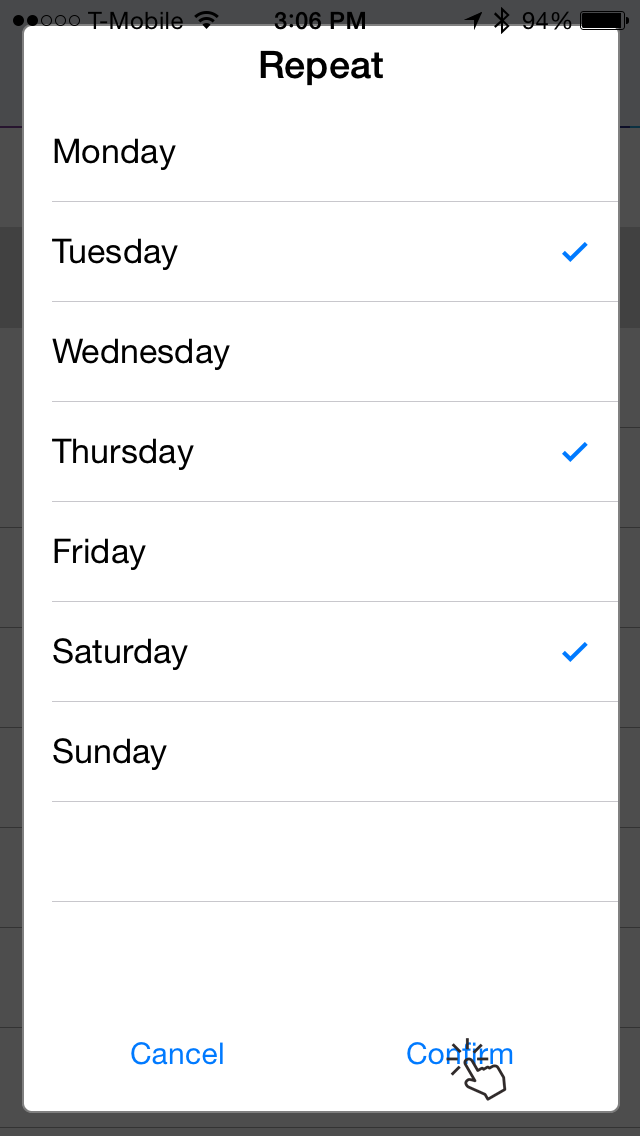 Choose whether you want this to be repeated on specific days. Leaving this empty means the action will be applied one-time and expire.