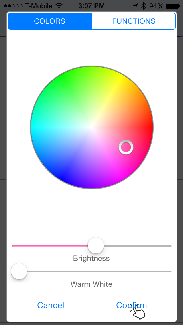If you have selected to turn the bulb ON, you can also optionally select a color and brightness level or even a pre-programmed mode the bulb should be on when turned on.