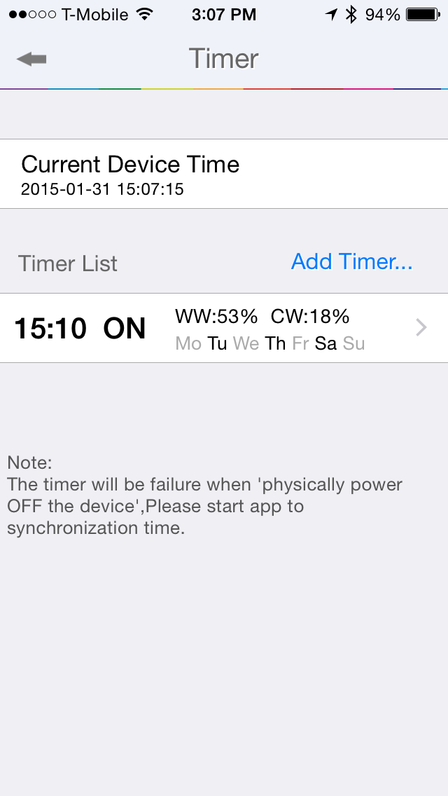 NOTE: You can have more than one timer set. They will be applied in the order in which the timer is set. So you can create interesting effects like wake up sunrise timers (more on this later).