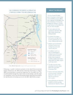 What will a 12-mile SW Corridor light That’s a question engineers, plan- “It is forecasted to have significant STEERING COMMITTEE RECOMENDATION
