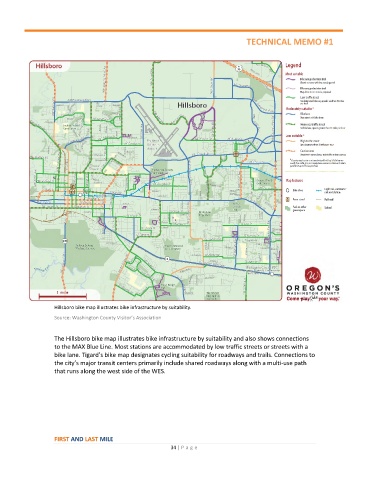 The Hillsboro bike map illustrates bike infrastructure by suitability and also shows connections