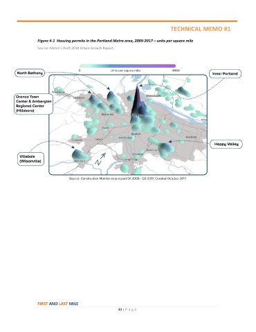 TECHNICAL MEMO #1 Figure 4-1 Housing permits in the Portland Metro area, 2009-2017 – units per square mile Source: Metro’s Draft 2018 Urban Growth Report FIRST AND LAST MILE 49 | P a ge
