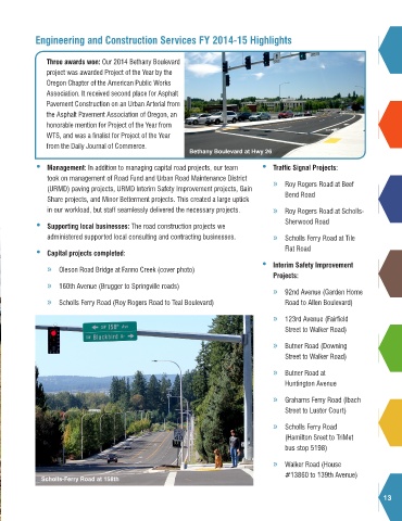 in our workload, but staff seamlessly delivered the necessary projects. » Roy Rogers Road at Scholls-