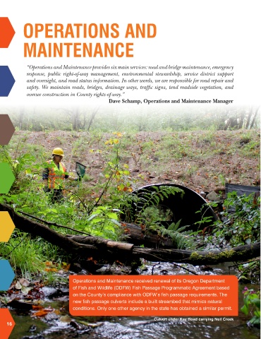 “Operations and Maintenance provides six main services: road and bridge maintenance, emergency