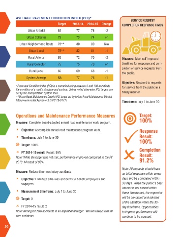 the condition of a road’s structure and surface. Unless noted otherwise, PCI targets are
