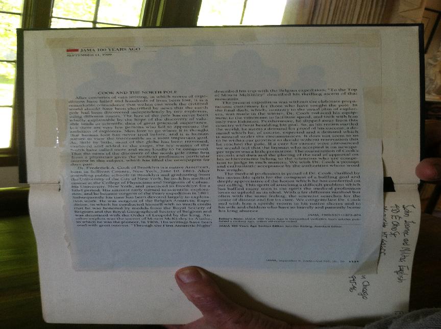 Book in excellent collection. Fight of Peary vs Dr. Cook on who got there first as started.