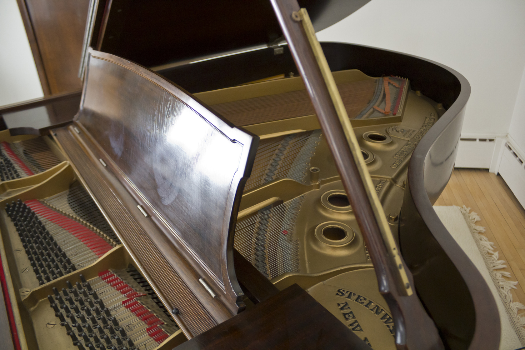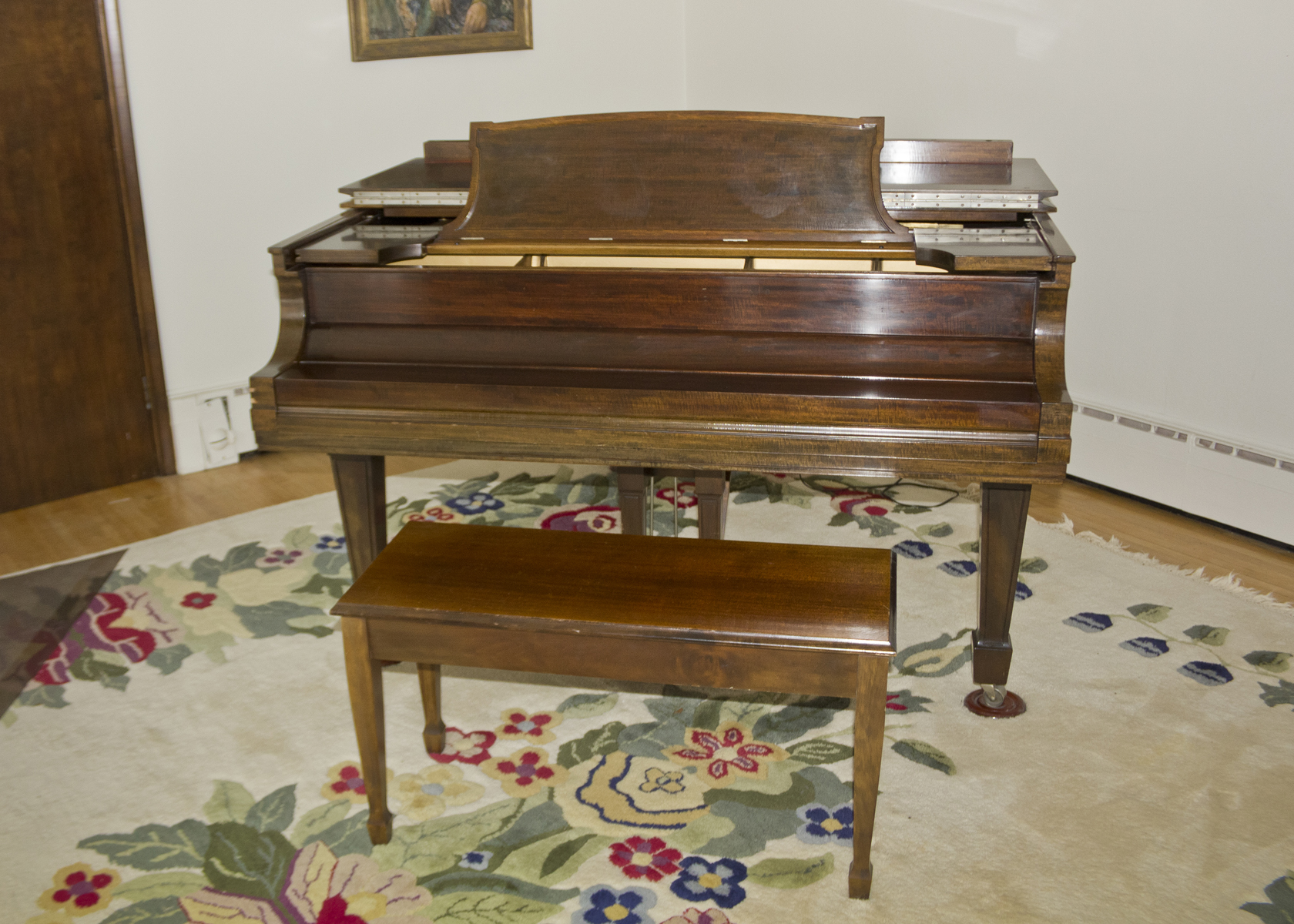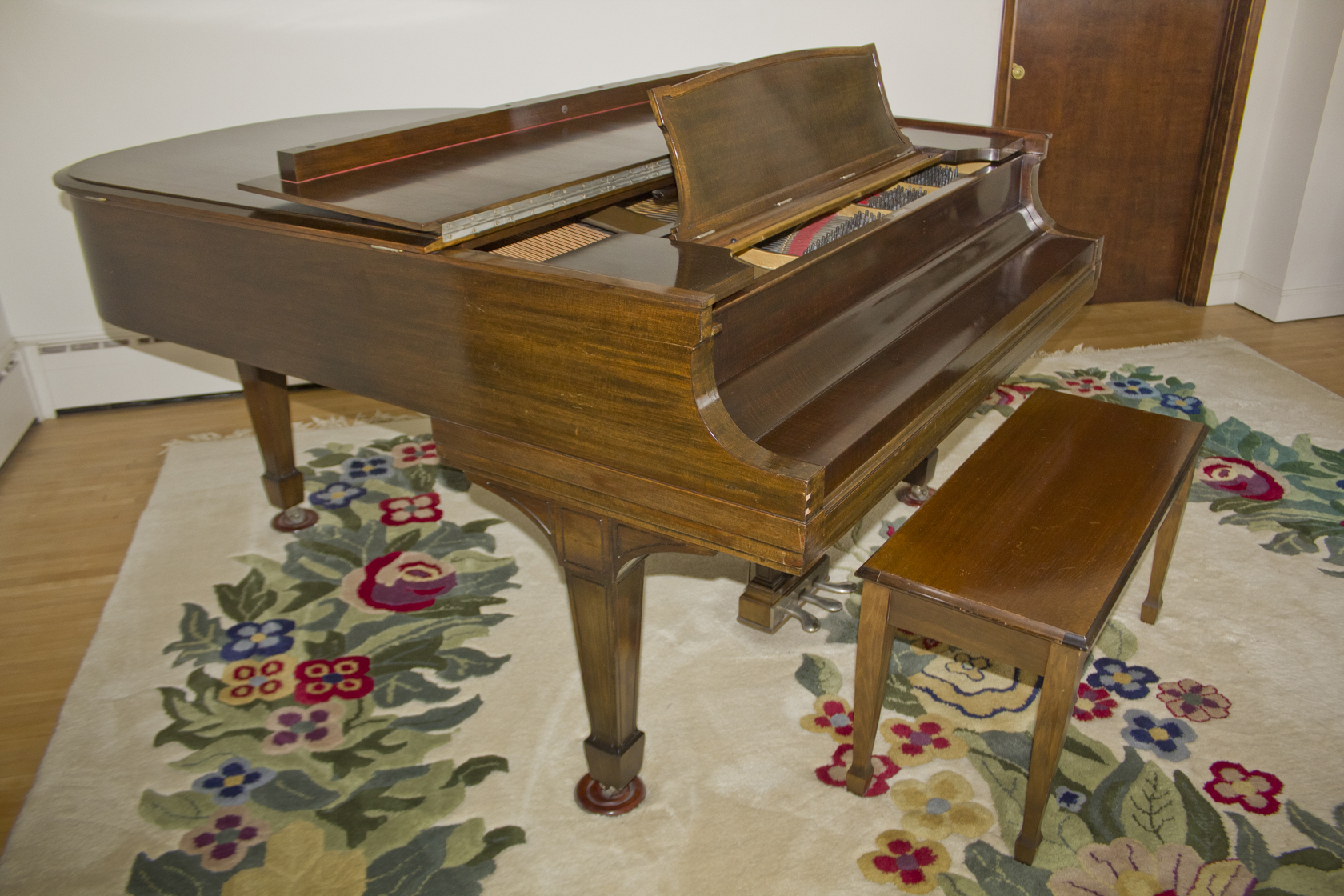 - Manufacturer: Steinway, Model L grand piano 5’ 10” with seat