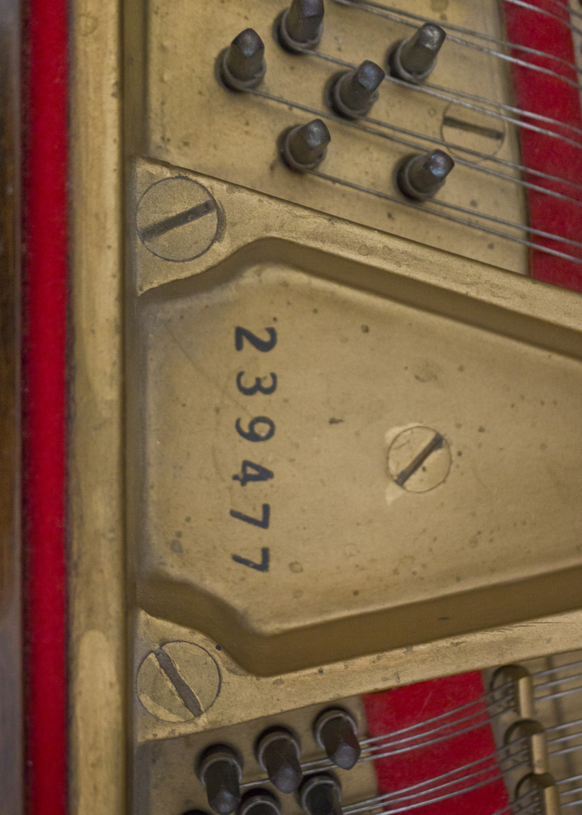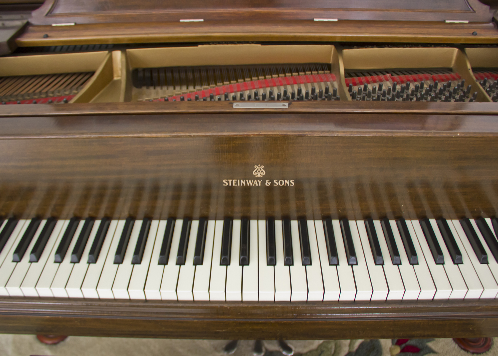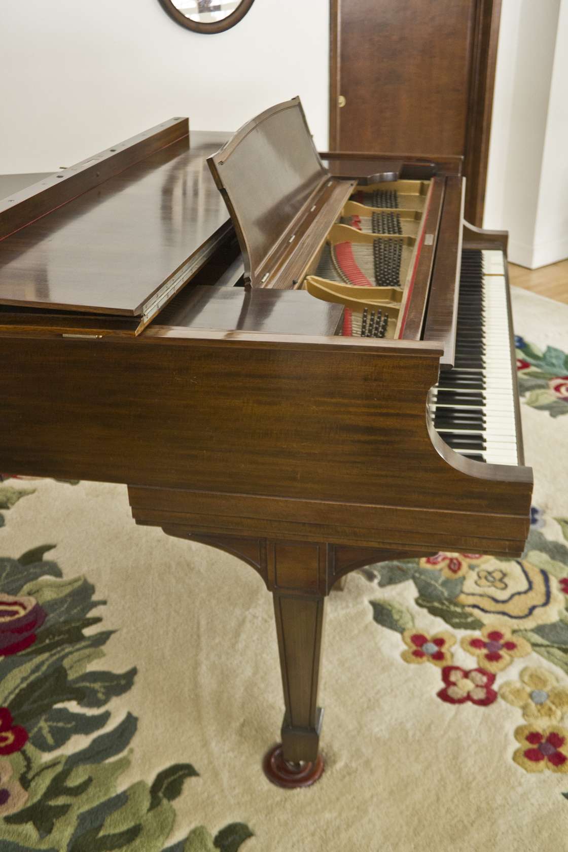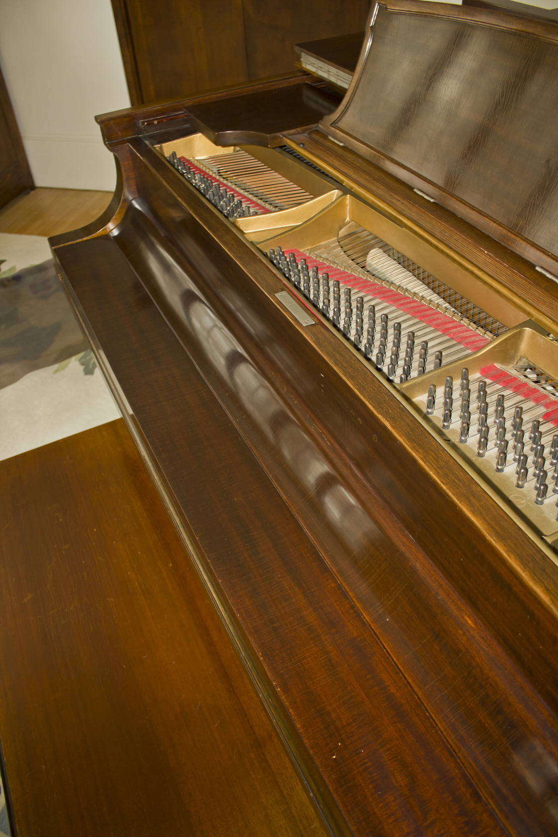 Condition Report in 2017: Piano has been maintained in good condition with regular cleaning and tuning. A humidity system to keep wood and mahogany finish in good condition is installed. Key tops in good condition. Action functions like pedals, and tonal producing systems, need further restoration.