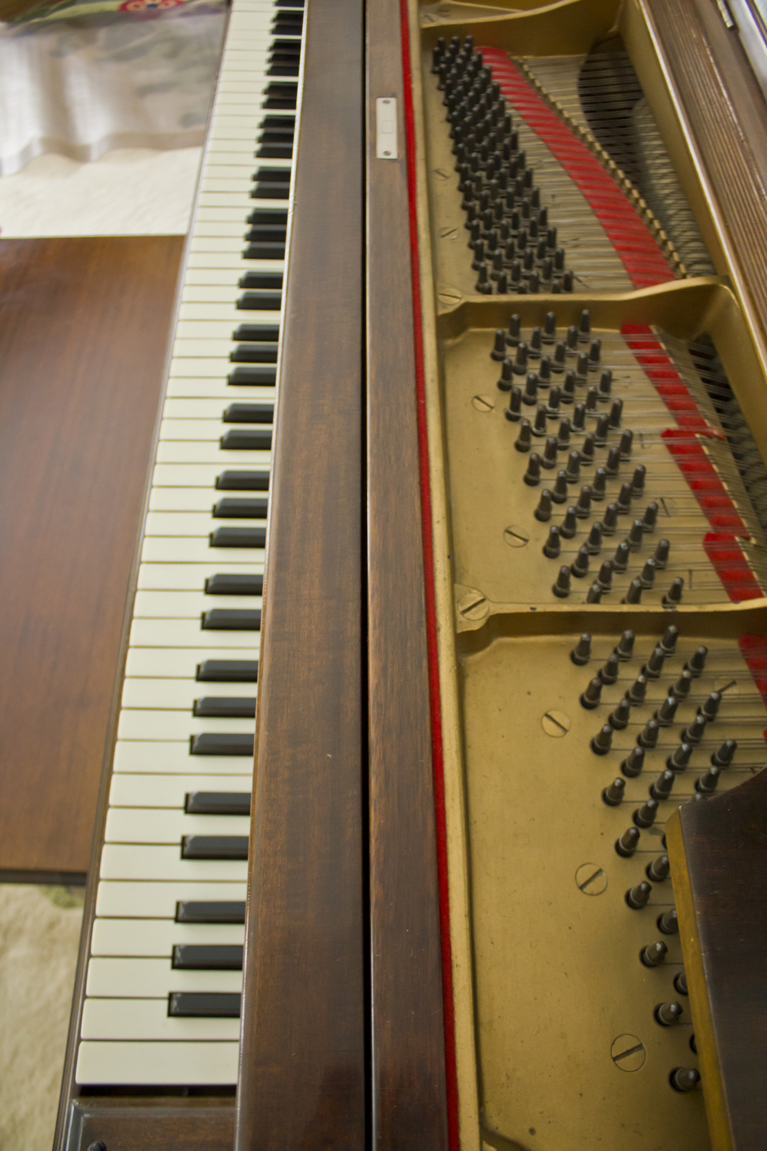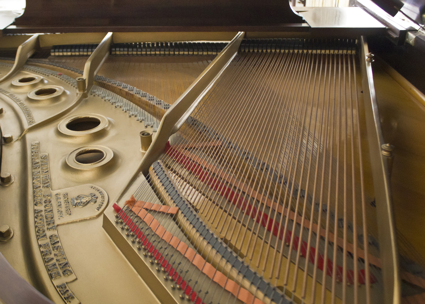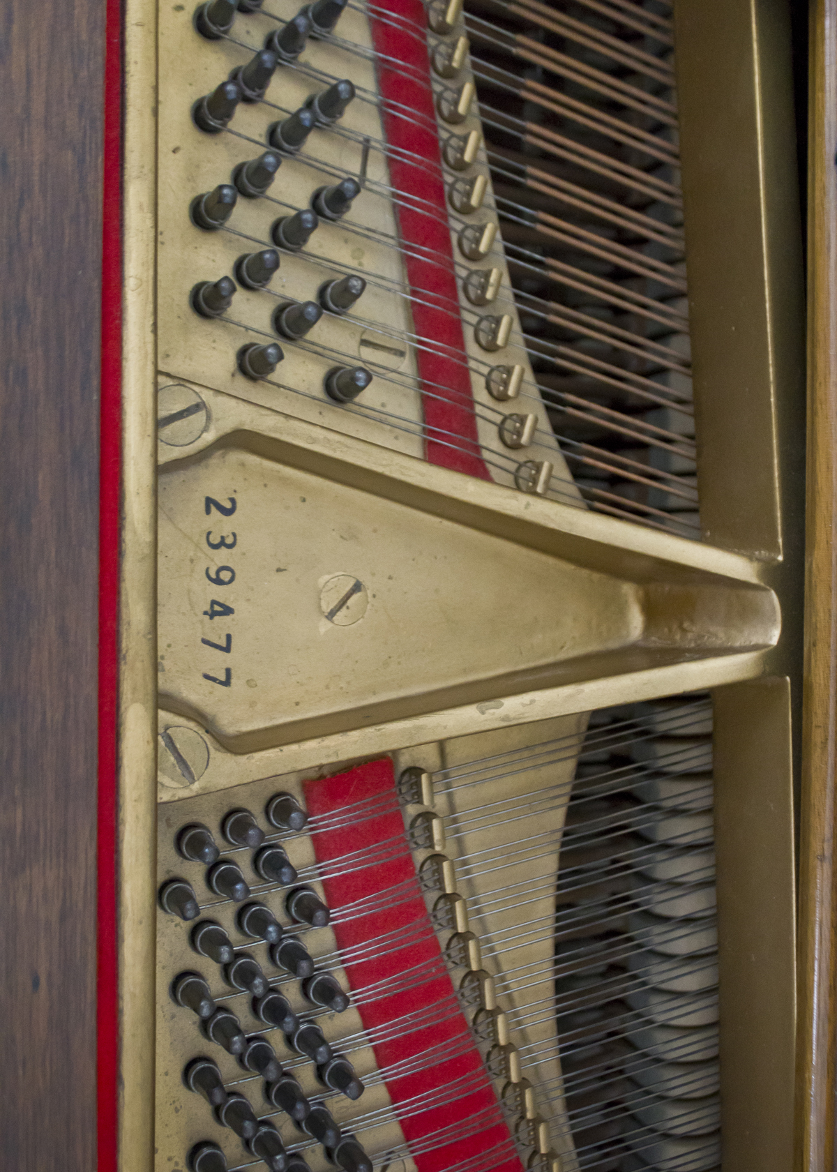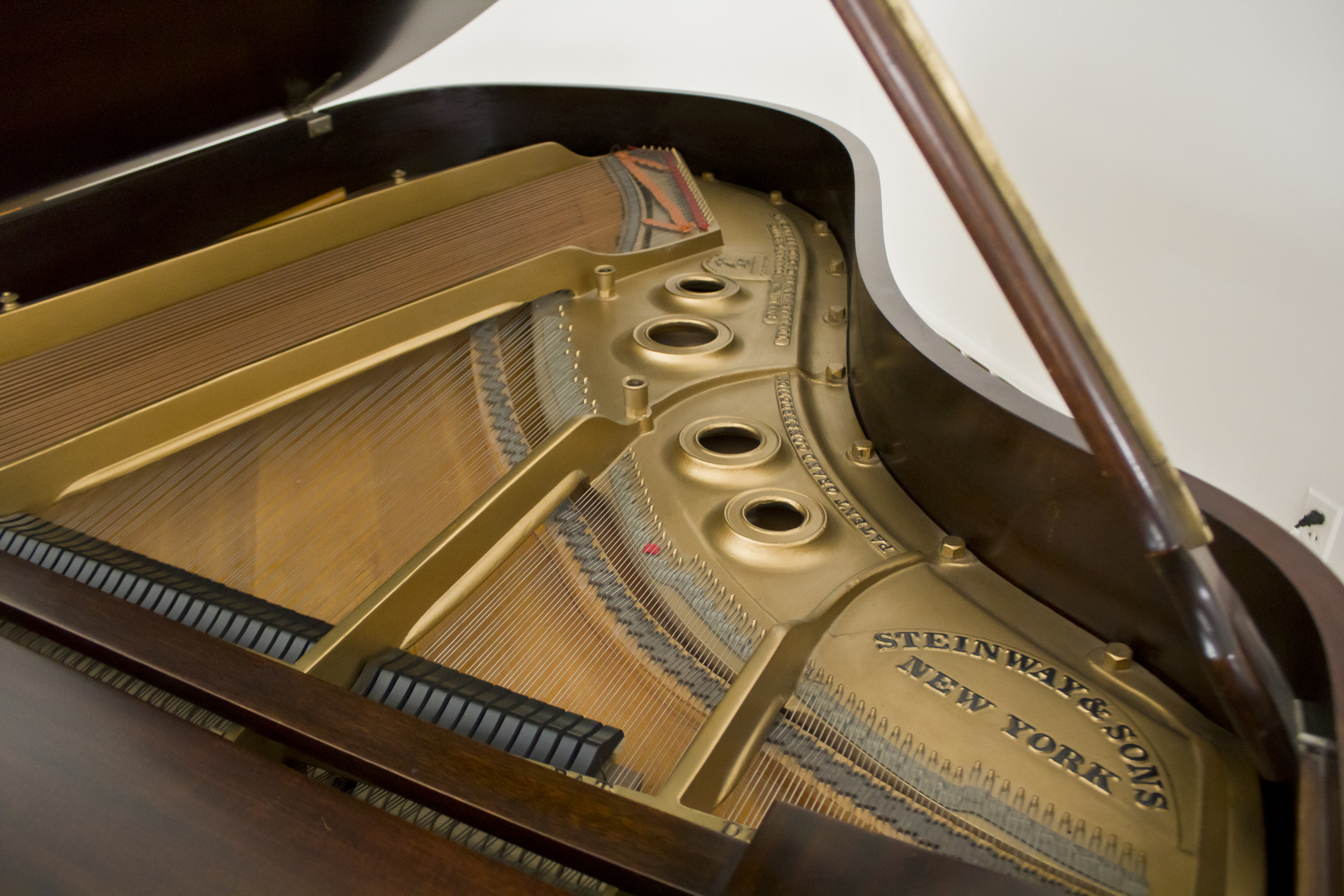 Condition Report in 2017: Piano has been maintained in good condition with regular cleaning and tuning. A humidity system to keep wood and mahogany finish in good condition is installed. Key tops in good condition. Action functions like pedals, and tonal producing systems, need further restoration.