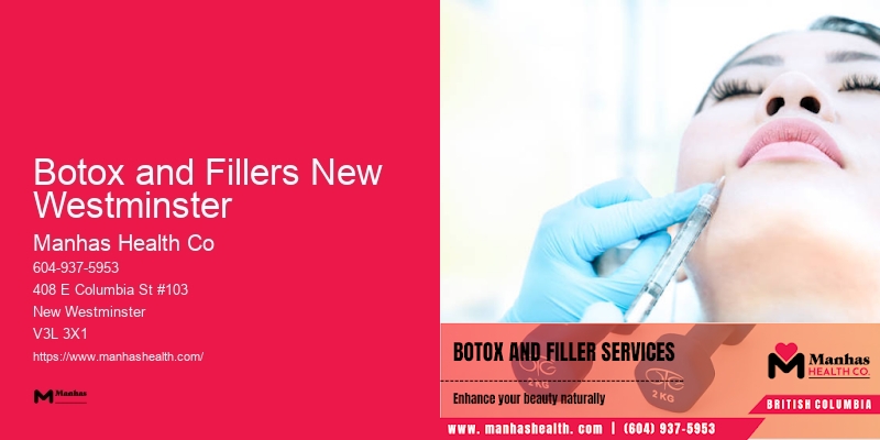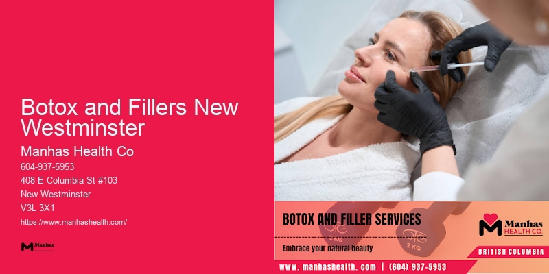 To maintain your refreshed look, we'll discuss a follow-up schedule, usually every 3 to 6 months, depending on your individual response to the treatment. At Manhas Health Co., your well-being is our top priority, and we're committed to standing by your side, ensuring you feel supported and confident in your post-treatment journey. Before your appointment, you'll want to avoid alcohol for at least 24 hours and steer clear of anti-inflammatory medications and blood thinners for two weeks to minimize bruising. Learn more about Manhas Health Co. here. This prevents spreading the Botox to unintended muscles. Facial symmetry We've established strict sterilization and safety procedures that meet, if not surpass, the industry's best practices. Learn more about Botox and Fillers New Westminster here