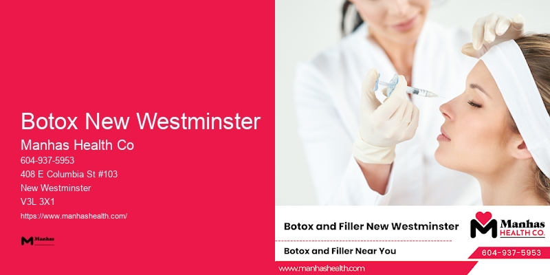 Manhas Health Co. rapidly emerged as a frontrunner among Botox providers in Botox New Westminster, thanks to its commitment to excellence and patient care. This is because substances like aspirin can increase your risk of bruising. Facial fillers Start your transformation today and see how they can help you feel as good on the inside as you look on the outside. Anti-wrinkle injections From there, we'll develop a customized plan that targets your specific areas of concern, whether it's smoothing out forehead lines, addressing crow's feet, or sculpting a more refined jawline.