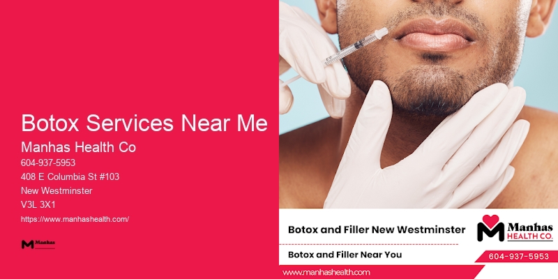 It's a quick, minimally invasive procedure that doesn't require any downtime, making it a popular choice for many seeking cosmetic improvements. This helps prevent the Botox from spreading to unwanted areas. At Manhas Health Co., we don't just follow the necessary regulations; we aim to exceed them. At Manhas Health Co. in Botox Services Near Me, achieving that dream is closer than you might think, thanks to our trusted Botox providers.