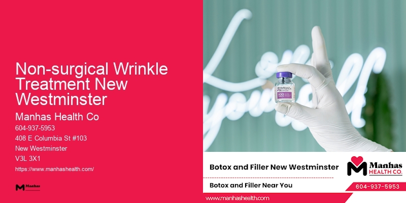 At Manhas Health Co., the future is bright, and we can't wait to embark on this exciting journey with you, shaping the future of aesthetics together. Read more about Non-surgical Wrinkle Treatment New Westminster here Let's help you achieve the transformation you've been dreaming of with our leading aesthetic services. Keep upright for the first few hours post-treatment and avoid any strenuous activities or exercise for the rest of the day to prevent any unnecessary pressure on the treated areas. Learn more about Non-surgical Wrinkle Treatment New Westminster here There's no downtime, meaning you can go about your day right after.