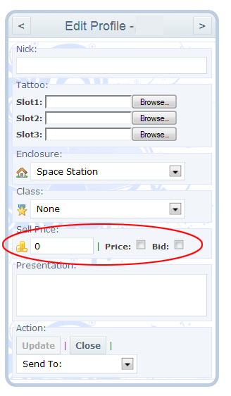 The box on the left is where you can input the price of the pony. To the right, there are two boxes that can be checked off: Sell and Bid. Below is an explanation of what each means and does: