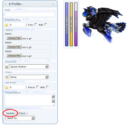 Once you've selected your tattoo pieces in the correct slots hit "Update" and the tattoo will appear on your pony.