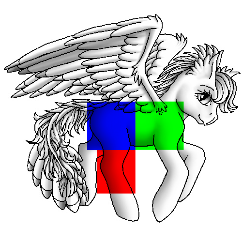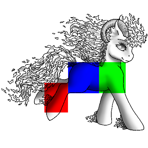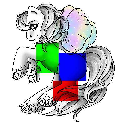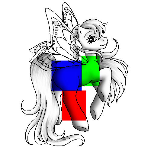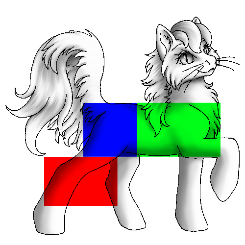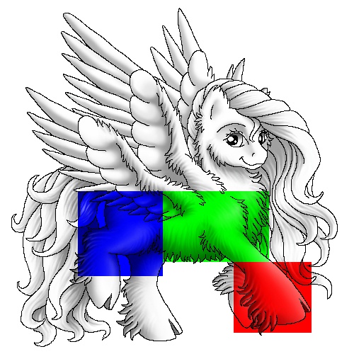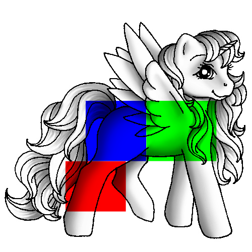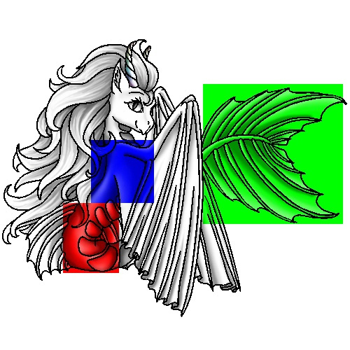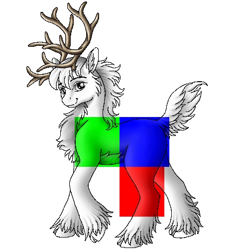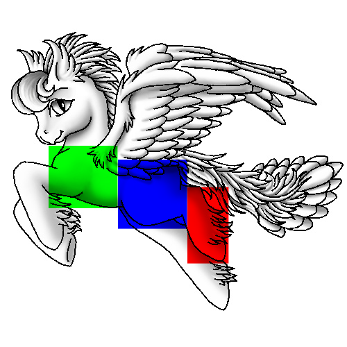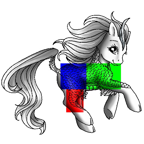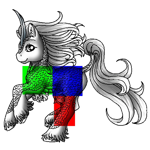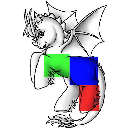 b. A template for where the pony tattoo slots go, also known as a tattoo location guide -- there is a location guide website (Click Here) but you can also upload solid color GIFs into your pony's tattoo slots to see where they go, and how they cover the pony. Use different colors to easily discern which slot is which. Example: