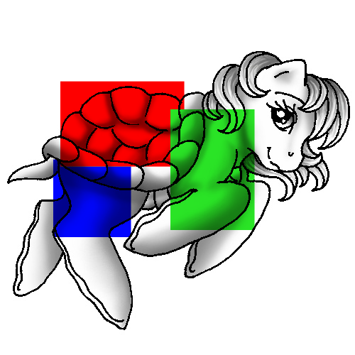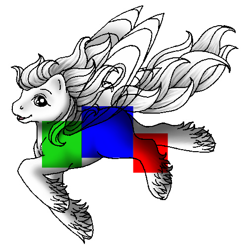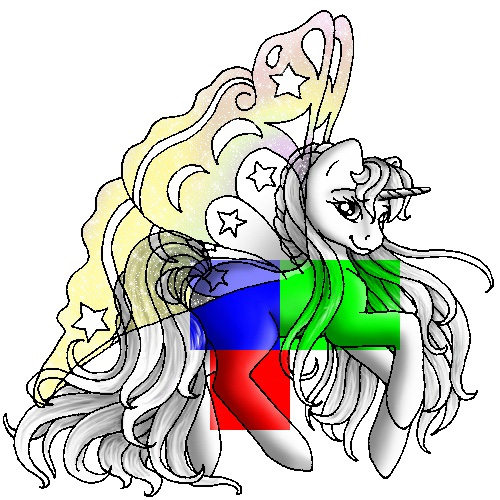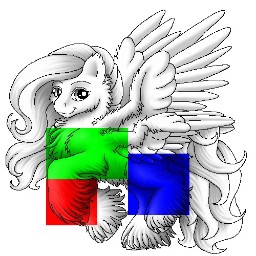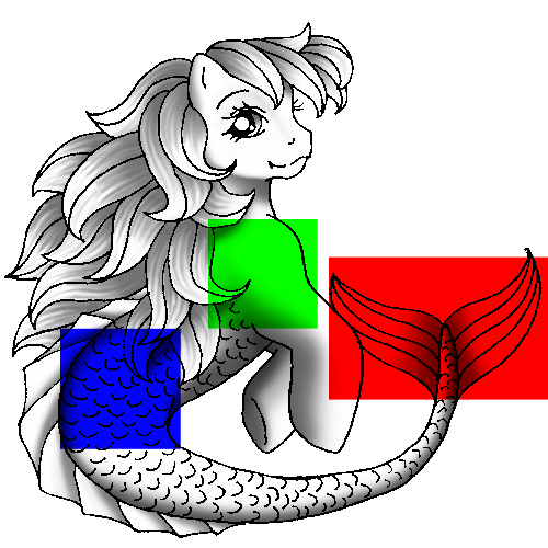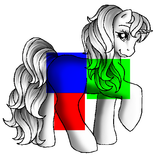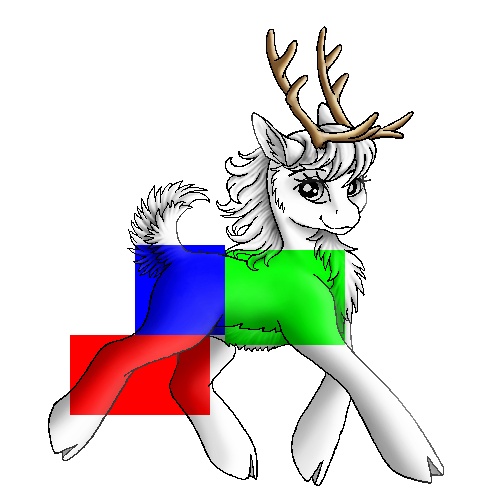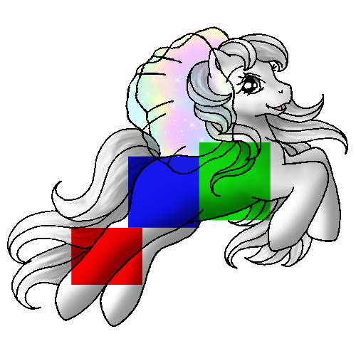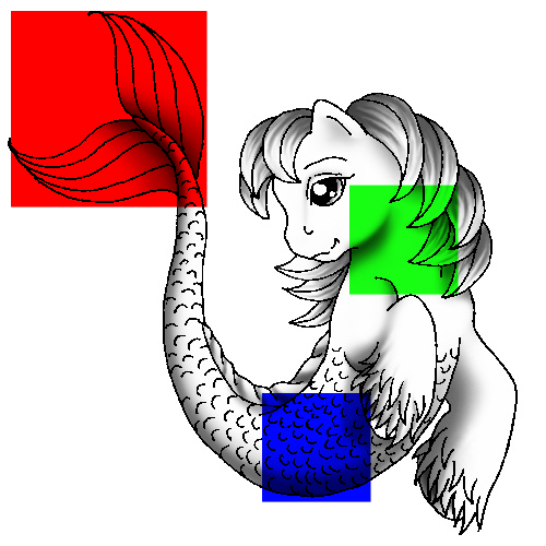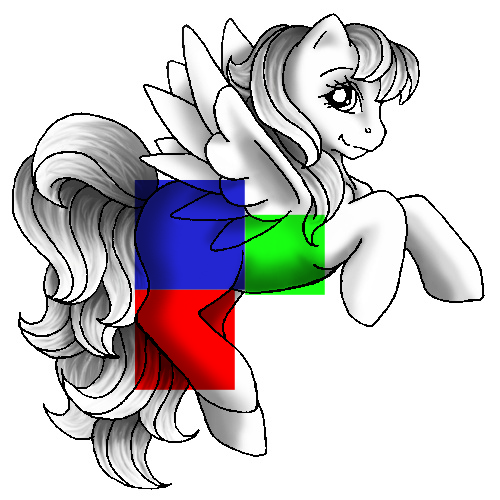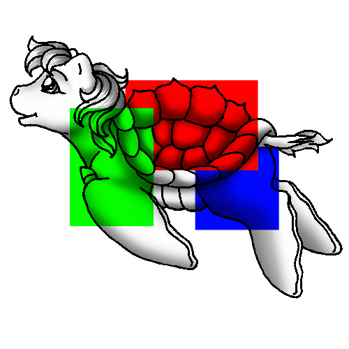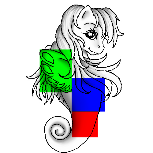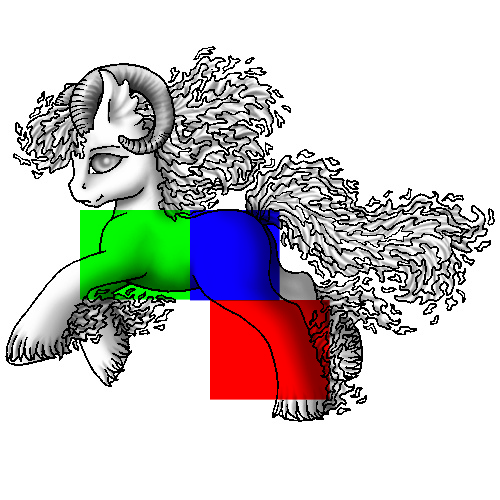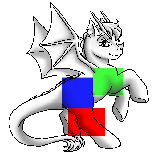 b. A template for where the pony tattoo slots go, also known as a tattoo location guide -- there is a location guide website (Click Here) but you can also upload solid color GIFs into your pony's tattoo slots to see where they go, and how they cover the pony. Use different colors to easily discern which slot is which. Example: