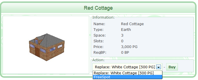 When you have found the arena you would like, you can double click on the image. This will bring you to a page that shows you a slightly bigger image of the arena along with the information from the main page. On this page you should also notice a drop down box entitled action. This is where you can select whether or not to purchase the arena.