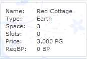 The first link is called Enclosures. Very simply put this where you can select which type of stable your pony will live in. You will notice 6 informative areas on each stable: Name, Type, Space, Slots, Price, & ReqBP. Below is a brief description of each one: