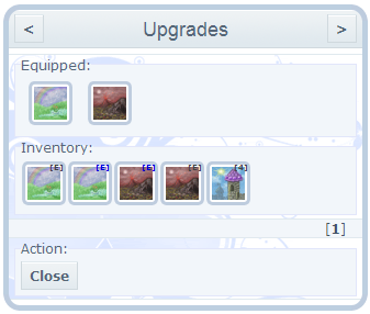 Double click the image under Inventory to add the item, or double click the image under Equipped to remove it. When you are finished, you can click Close.