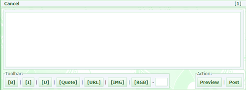 Our forums use BBCode (Bulletin Board Code) and will allow users the ability to change their font colors, font styles, quote other users, post links, and post images.