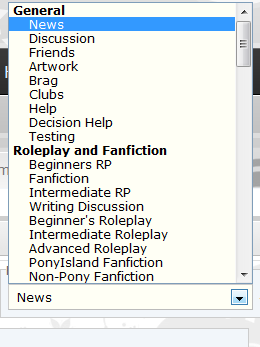 No site would be complete without a Search engine built in to it. PonyIsland's search feature helps users locate various things around the site that you may be looking for. To access the Search window, click on Search on your main navigation strip. Once you have done this you will notice five options. They have been listed below with brief descriptions - to learn more about each option, please see the appropriate section: