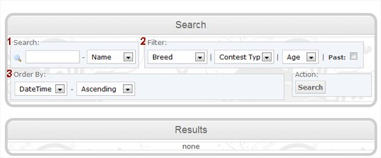 Much like the user section of the search, the contest section offers three key areas to aid you when using this feature which repeats from the last section: Search, Filter and Order By.