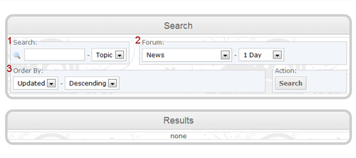 The forum section of the search allows you to scour the forums looking for certain topics, replies, or posts made by specific users. Please keep in mind that you can only search one forum at a time.