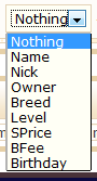 A selection here will sort ponies by sale price, level, owner, breed fee, etc and whether you want to see them ordered lowest-to-highest or highest-to-lowest.