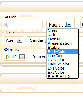 Here you can filter the search to only look for ponies which show specific SGenes. If you choose "Colorize" instead of the gene listed under "Colorized", you will be able to search for ponies that show any colorize gene in that location.
