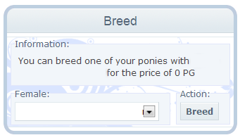 The first way can be done in the courtesy of your very own stable! First you will need to have two adult ponies; one male and one female. In order to breed the two, you will need to click on the male's name to enter its profile section. Once you are looking at his profile, you will find a section called BREED that has a drop down box: